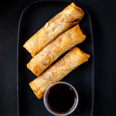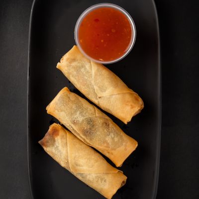 Irish Spice Box, Fried chicken pieces, Egg Fried Rice, Veggie Spring Rolls, House curry sauce, sweet sour sauce